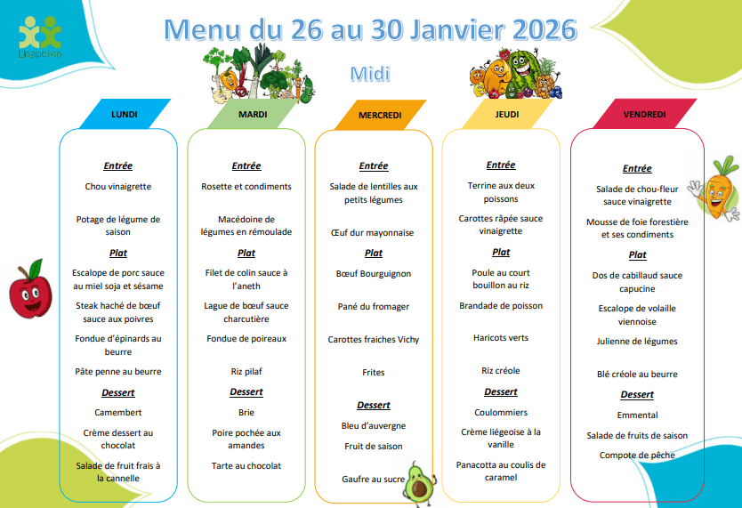 Menu de la semaine du 26 au 30 Janvier