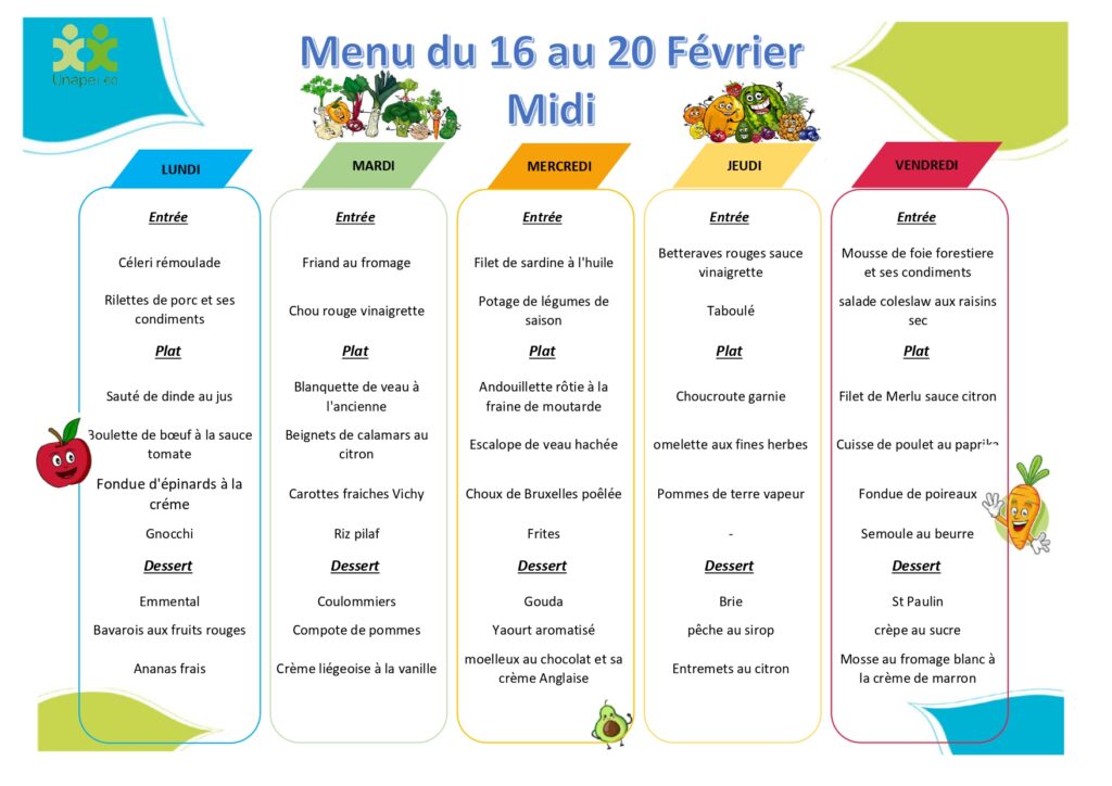 Menu de la semaine du 16 au 20 Février !