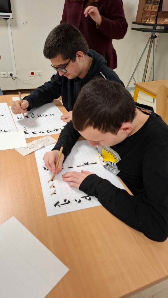 Antoine nous a expliqué l’histoire de la calligraphie. Il nous a montré un parchemin très ancien.